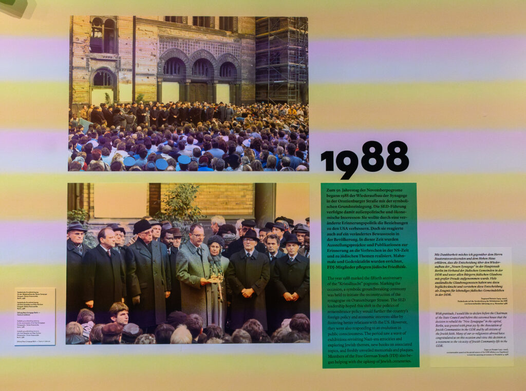 Was dabei unerwähnt bleibt, ist, dass die Grundsteinlegung für den Wiederaufbau der Synagoge am 10. November 1988 stattfand. Einen Tag nach dem 50. Jahrestag der Reichspogromnacht. Ein Jahr vor dem Fall der Mauer. Kahane war da drei Jahre alt. Laut Zeitzeugen waren Keramikwerkstätten der DDR mit der Anfertigung von Ziegeln für die Synagoge in der entsprechend benötigten Form beschäftigt. Unter anderem die Werkstatt von Hedwig Bollhagen und die Keramikwerkstadt der Kunsthochschule Burg Giebichenstein in Halle.